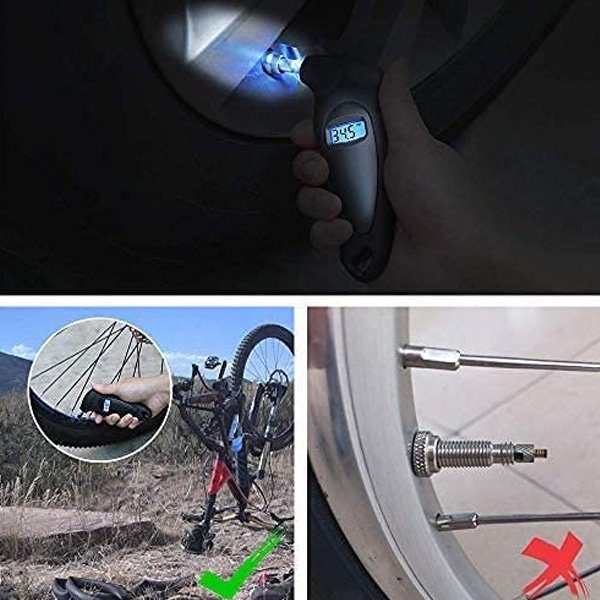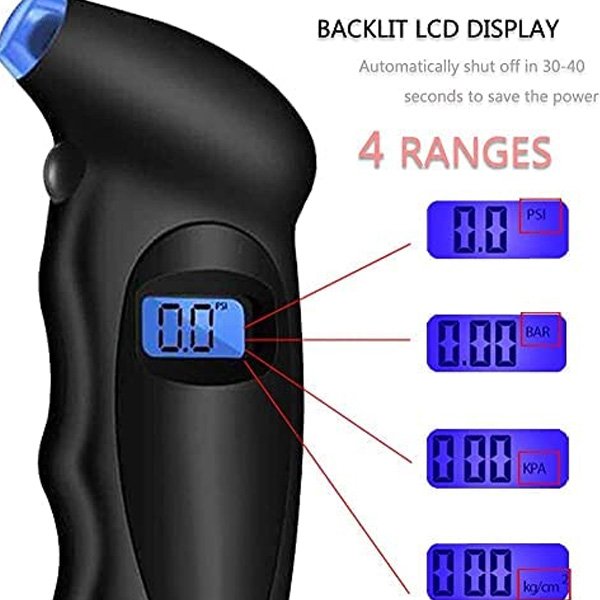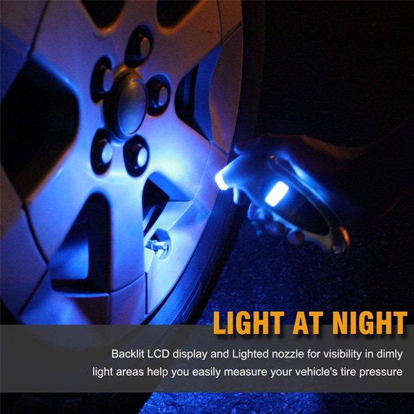 A push button turns the gauge on and selects one of 4 measurement ranges. Instantly and clearly shows exact reading, eliminating the guesswork of analog gauges, you can bring the gauge to your face rather than having to squat in a weird position. The light on the unit enable you to find and connect to the valve stem in dark conditions. Versatile use for cars, trucks, motorcycles, bicycles etc but not compatible with presta stems.