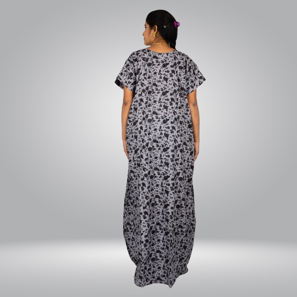 Women's Cotton Printed Nighty /Maxi /Night Dress, ( Free Size ) grey