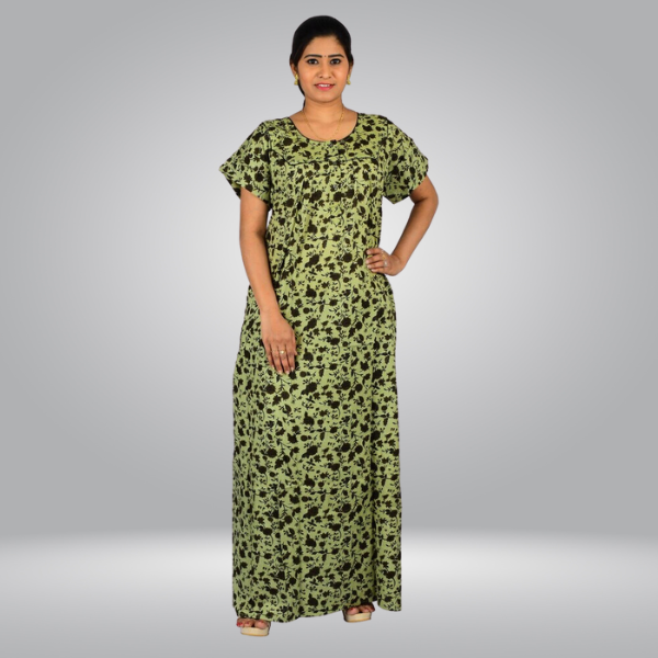 Women's Cotton Printed Nighty/Maxi /Night Dress (Free Size) olive color
