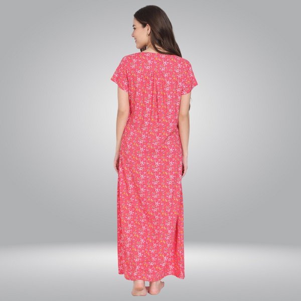 Women's Cotton Printed Nighty/Maxi /Night Dress (Free Size) pink