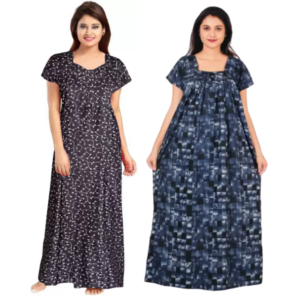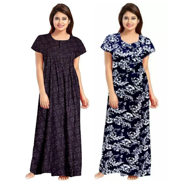 Women's Cotton Printed Regular Nighty/Maxi /Night Dress Pack of 2 (Free Size) Navy blue & Black