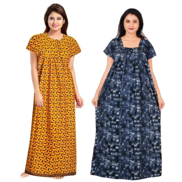 Women's Cotton Printed Regular Nighty/Maxi /Night Dress Pack Of 2 (Free Size) Yellow & Blue
