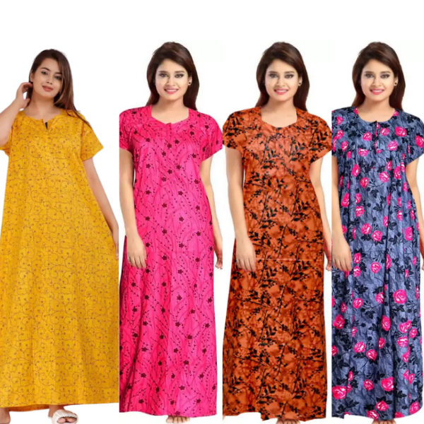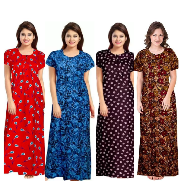 - Combos are customized in such a way that every nighty under a combo comes in different colours and the patterns. Same colour nighty will be delivered but the pattern will differ in all combos as shown.