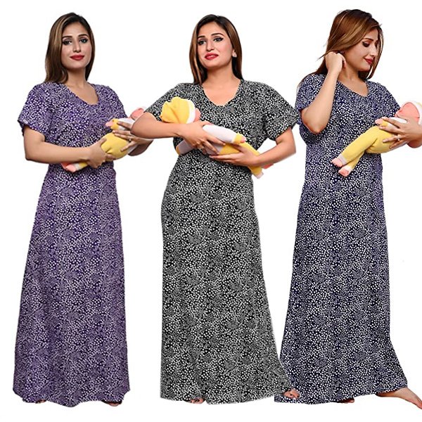 100% soft cotton fabric for ultimate comfort Length: Full Ankle Length Size: Nighty comes in free size and completely adjustable . It will make you feel Comfortable at your maternity period.