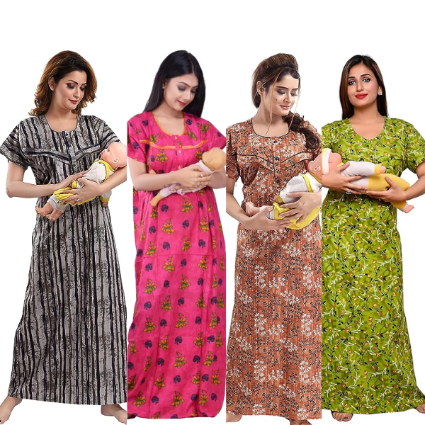 Women’s Maternity/Nursing Nighty /Maxi /Night Dress Pack Of 4 (Free Size) pink,green,black,brown