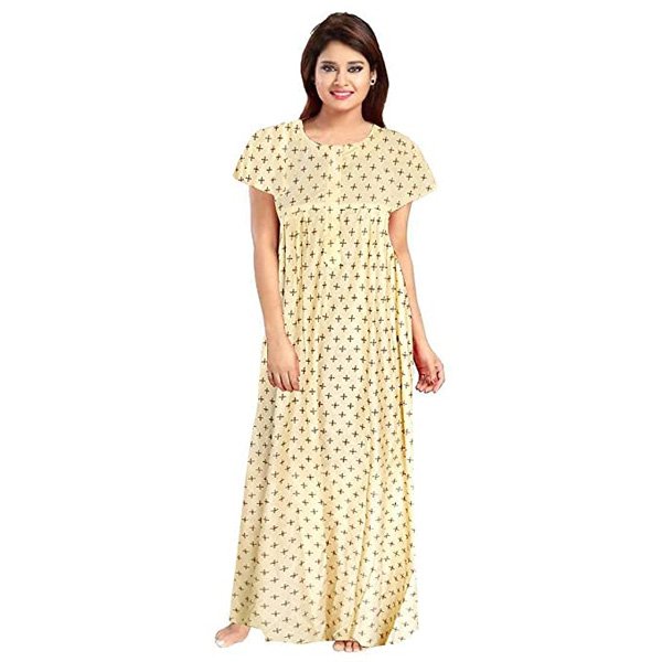 100% soft cotton fabric for ultimate comfort Length: Full Ankle Length Size: Nighty comes in free size and completely adjustable . It will make you feel pretty and pampered all at the same time Wash Care.