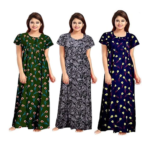 100% soft cotton fabric for ultimate comfort Length: Full Ankle Length Size: Nighty comes in free size and completely adjustable . It will make you feel pretty and pampered all at the same time Wash Care.