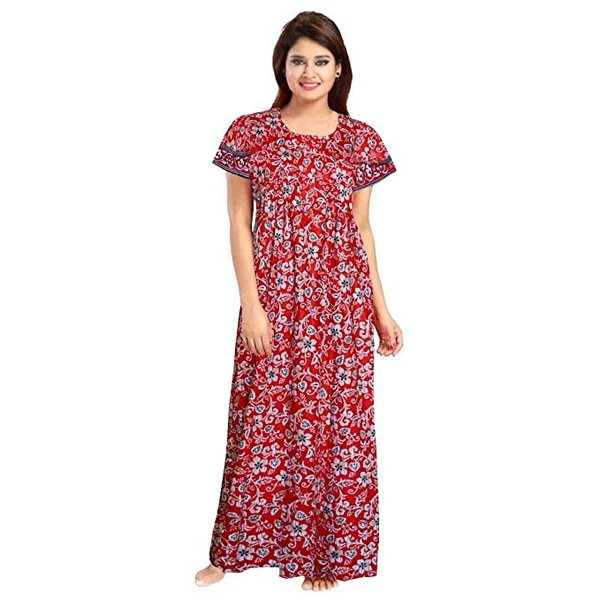 100% soft cotton fabric for ultimate comfort Length: Full Ankle Length Size: Nighty comes in free size and completely adjustable . It will make you feel pretty and pampered all at the same time Wash Care.