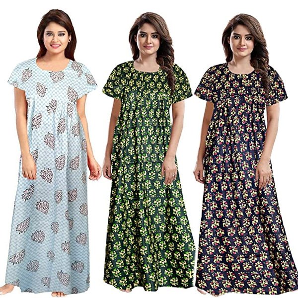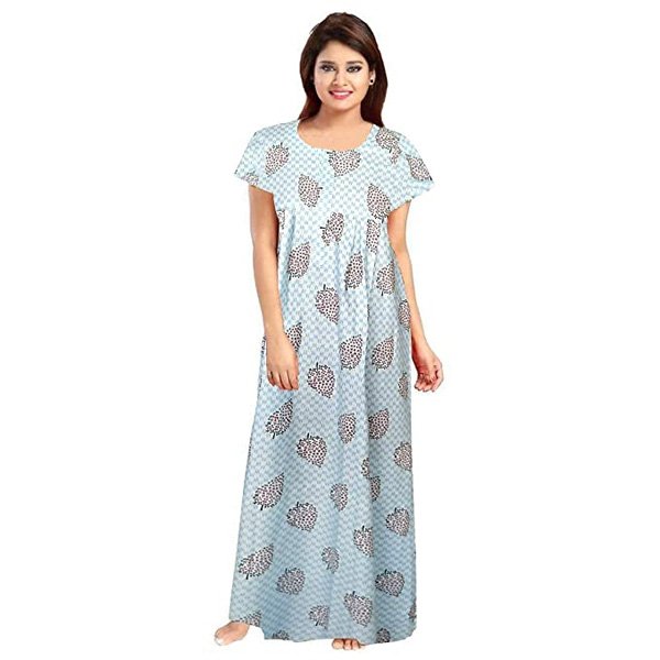 100% soft cotton fabric for ultimate comfort Length: Full Ankle Length Size: Nighty comes in free size and completely adjustable . It will make you feel pretty and pampered all at the same time Wash Care.